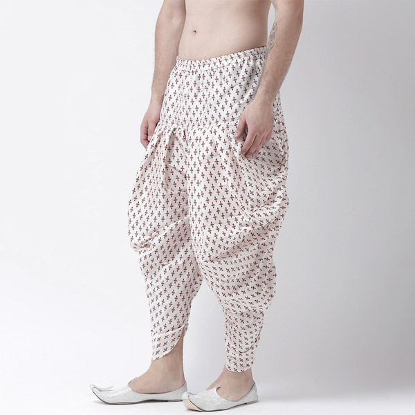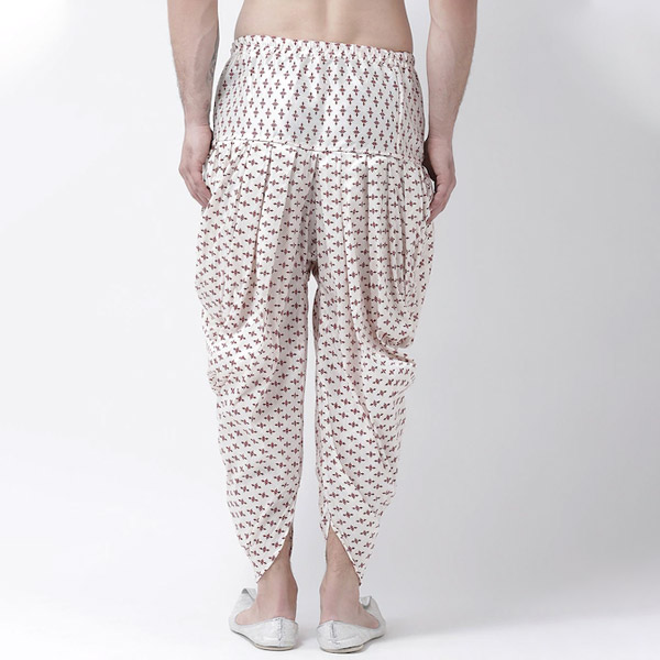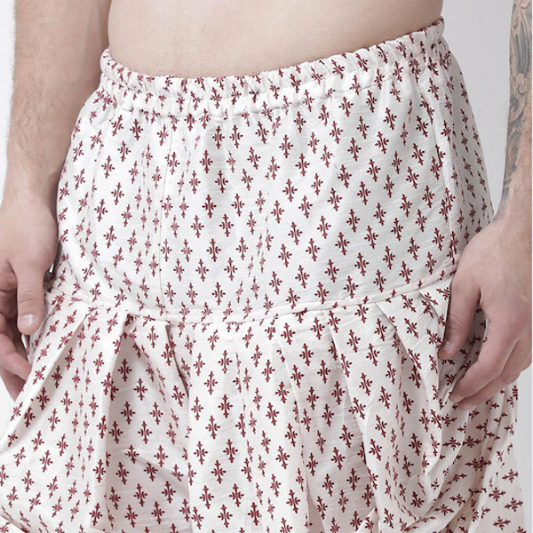 Off-white and red printed mid-rise dhoti with gathered and pleated detail, has an elasticated waistband