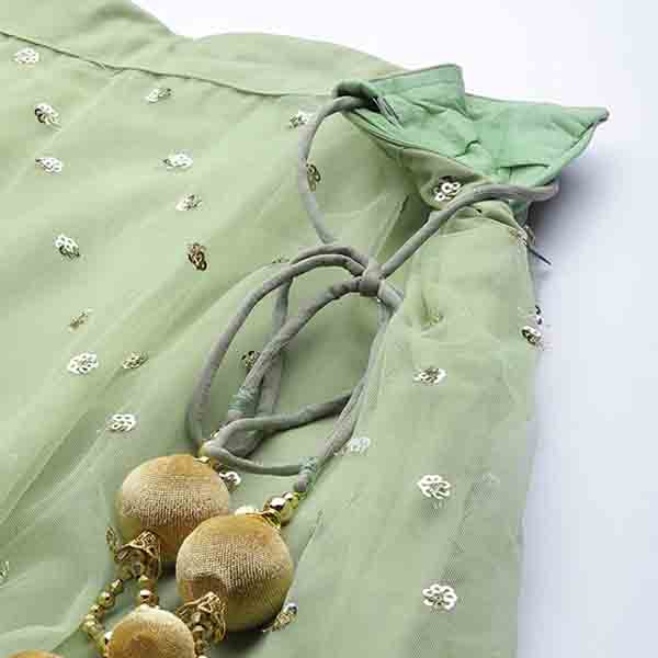 An amazing range of womens ethnic wear in soft and solid colors that looks perfect for festive wear. with beautiful designs and patterns. these apparels are very stylish and comfortable too. get rid of the traditional look this season wearing lehenga choli by readiprint fashions. this lehenga choli from readiprint fashions exhibits net fabric green colour semi-stitched lehenga with sequence work & choli with net dupatta.